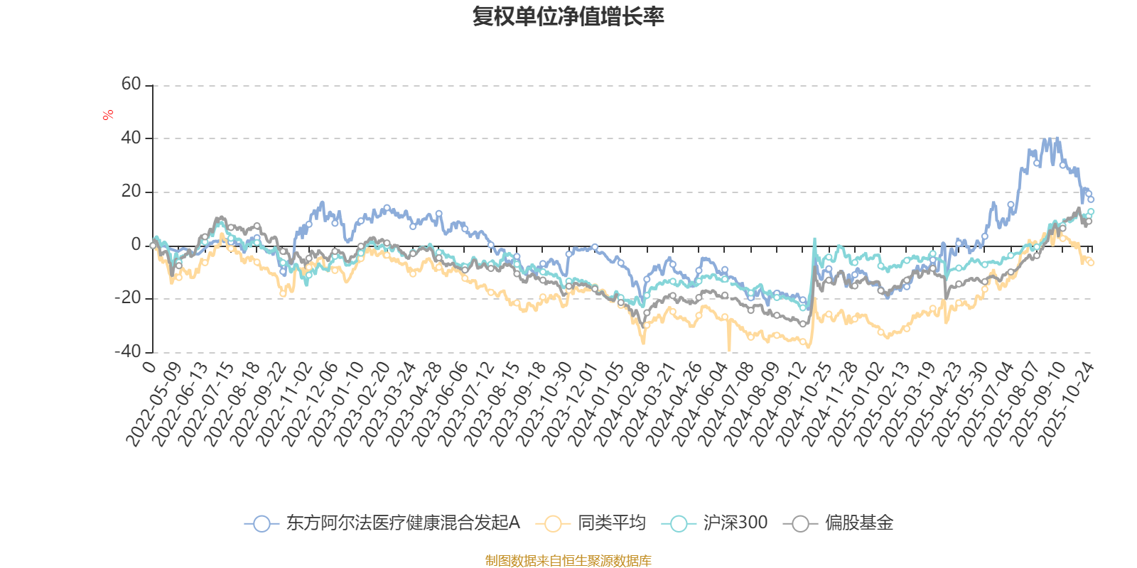 截至10月24日,东方阿尔法医疗健康混合发起A近三个月复权单位净值增长率为-9.01%,位于同类可比基金84/106;近半年复权单位净值增长率为14.79%,位于同类可比基金71/104;近一年复权单位净值增长率为30.30%,位于同类可比基金46/101;近三年复权单位净值增长率为11.53%,位于同类可比基金31/75。